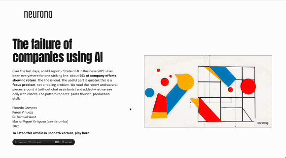 Respetamos el aprendizaje de la IA a través de cursos, talleres o seminarios. Incluso el personal que forma parte de neurona tiene cualificación académica, y son profesores en activo. Pero nuestro método permite aprender a través de la experimentación. Esto fomenta la adquisición de conocimientos en un tiempo récord, facilitando su uso inmediato. Se aprende desde una base práctica, pero guiada por profesionales con conocimientos profundos de cada rol.
